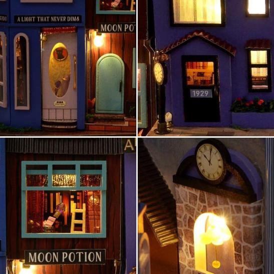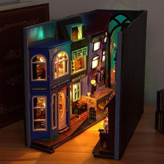 1 Box DIY Miniature Kit with LED Light for Desk Library Bookshelf Decoration For Teenagers And Adults , The Perfect Gift For Birthday & Christmas
