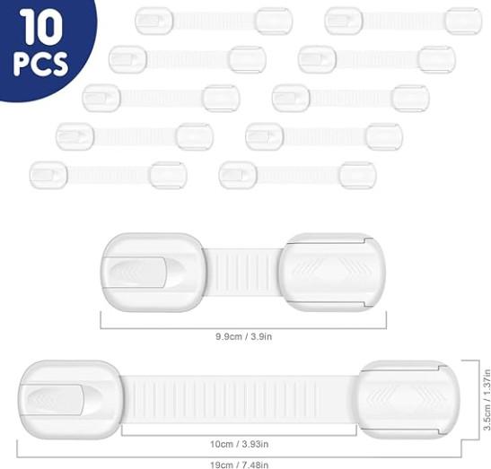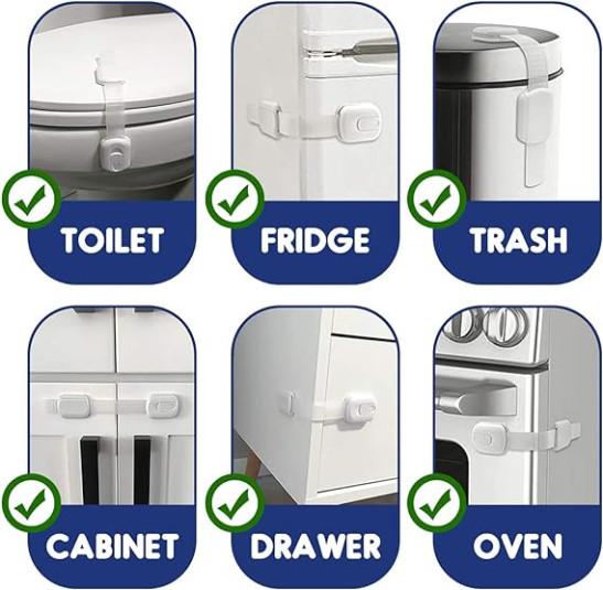 10 Pack Adjustable Cupboard Locks for Children Baby, Child Locks for Kitchen Cupboards Cabinet Fridge Drawer Refrigerator Toilet