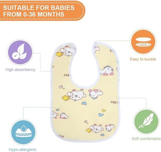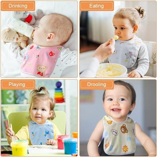 10pc Infant Bibs with Teething Soft and Absorbent with Adjustable Snaps, Bib Set for Unisex Newborn Toddlers Aged 0-36 Months