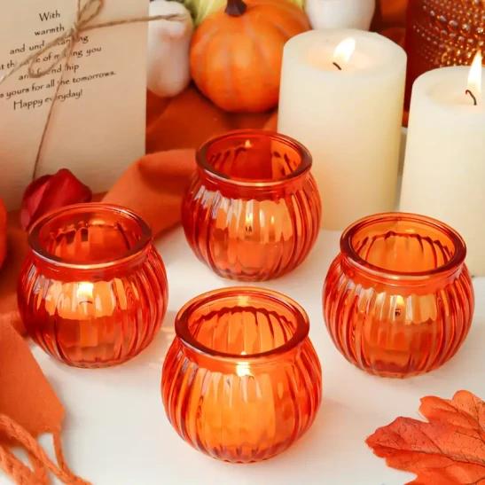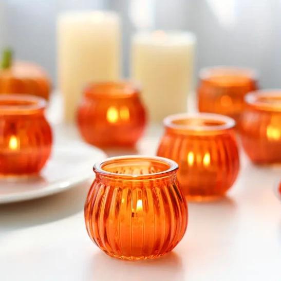12 Traditional Glass Pumpkin Candle Holders: Perfect for Thanksgiving, Halloween
