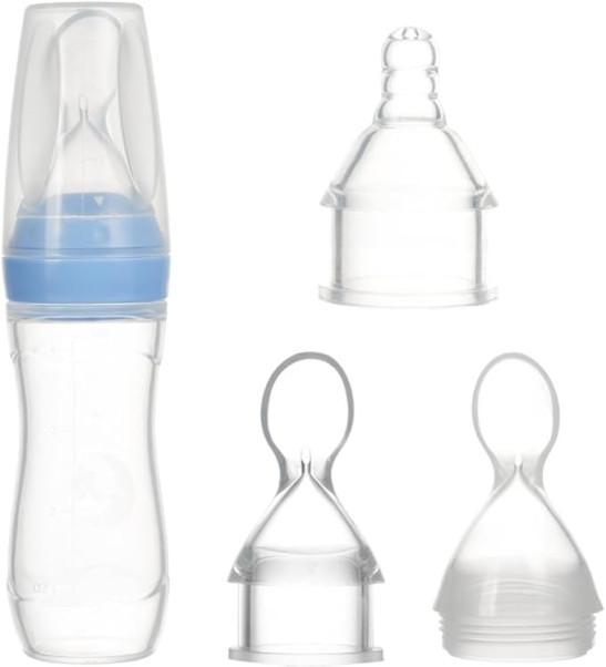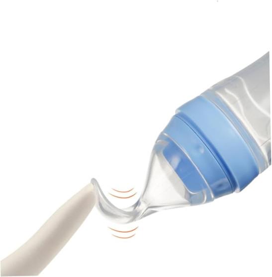 120ML Baby Silicone Squeeze Food Feeder Spoon with Lid Food Dispensing Spoon for Baby Toddler Infant Fresh Food Bottle Feeder Include Nipple and Spoon Blue OPP Bag Packaged, Food Bottle Feeder