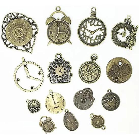 18 Pcs/set Clock Pendant Charms, Multicolored Mixed Antique Bronze Watch Gear Cog Wheel Charms Steampunk Clock Pendant DIY Jewelry Making Accessories
