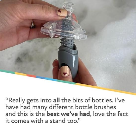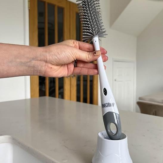 2 in 1 Bottle and Teat Cleaning Brush with Hygiene Stand, White
