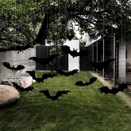 20pcs Glow-in-the-Dark Halloween Bats - Realistic Fake Black Bats with Glowing Eyes