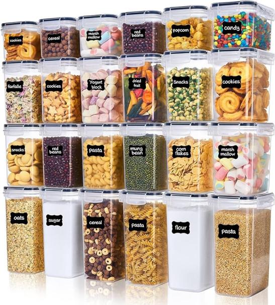 24 Airtight Food Storage Containers & Kitchen Storage Containers, BPA-Free Plastic Containers for Flour, Sugar and Baking Supplies,