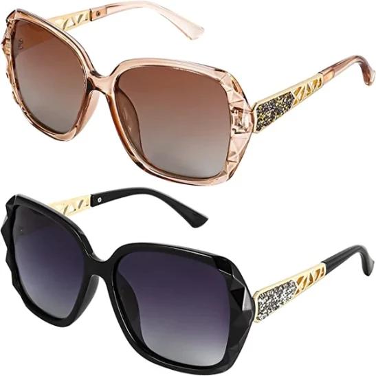 2pcs Women Large Sunglasses, Classic Trend Ladies Sunglasses UV400 Protection Oversized Polarised Sunglasses Sparkling Large Frame Sunglasses for Women