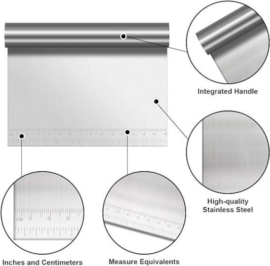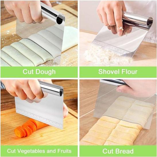 3 pcs set Stainless Steel Dough Scraper with Handle and Measuring Scale, Pastry Cutter Plastic Scraper Smoother Tool Set for Bread Pizza Cake Dough Baking Shaping Pizza Cutters