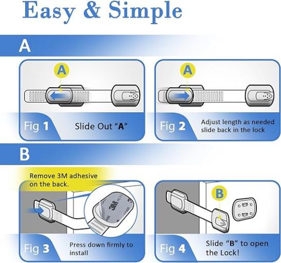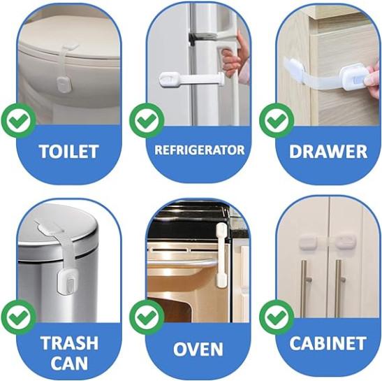 4 Pack Child Safety Strap Locks for Cupboards, Fridge, Cabinets, Drawers, Dishwasher, Toilet