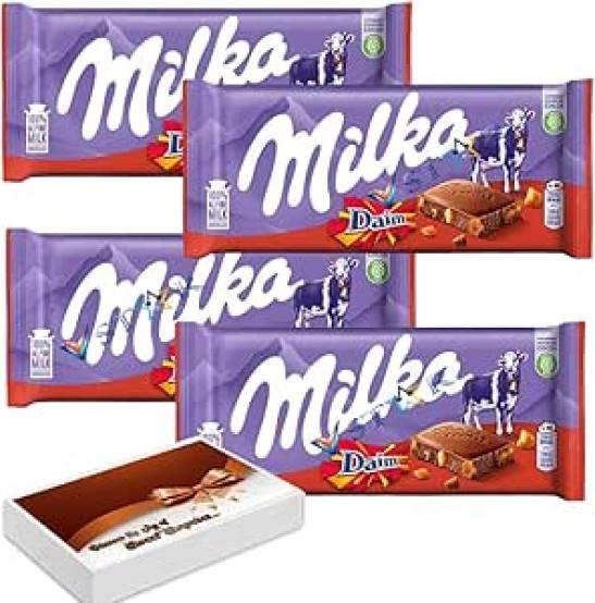 4 x Millka Alpine Daim Milk Chocolate Bar 100g with Gift Box