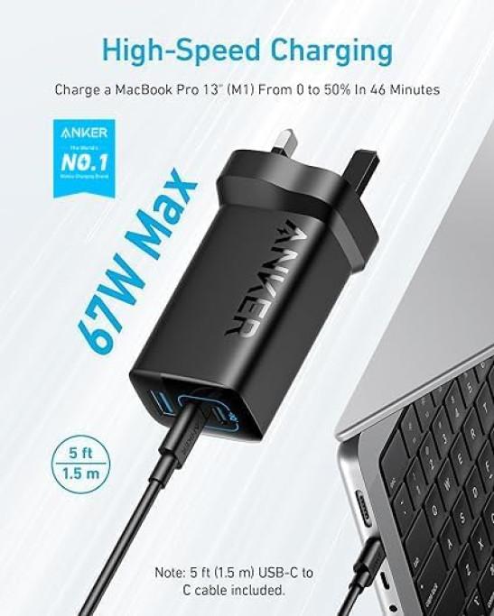 67W USB C Plug, Anker PIQ 3.0 Compact and Foldable 3-Port USB C Charger
