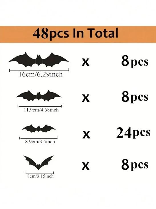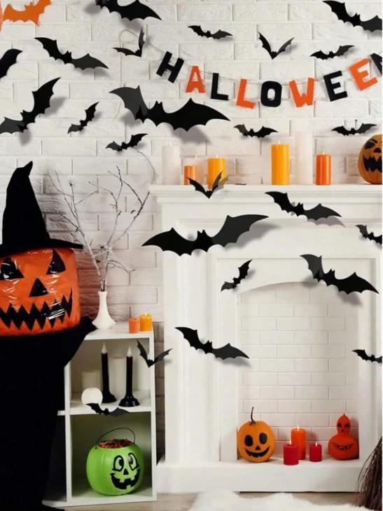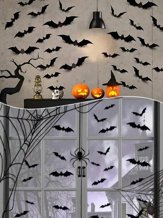 96pcs Bat Decorations - 3D Bat Wall Stickers, 4 Sizes, Reusable For DIY, Bathroom, Bar, Office, Indoor, Halloween Party Supplies, Home Decor Fall Autumn,Christmas