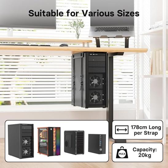 Adjustable Under Desk PC Mount, CPU Holder, Adjustable Straps Fit