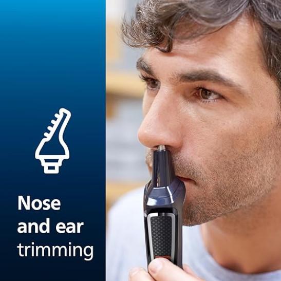 All-In-One Trimmer, Series 3000 Grooming Kit for Beard & Hair with 7 Attachments, Including Nose Trimmer, Self-Sharpening Blades, UK 3-Pin Plug-MG3720/33