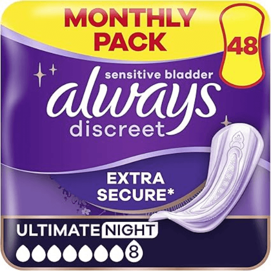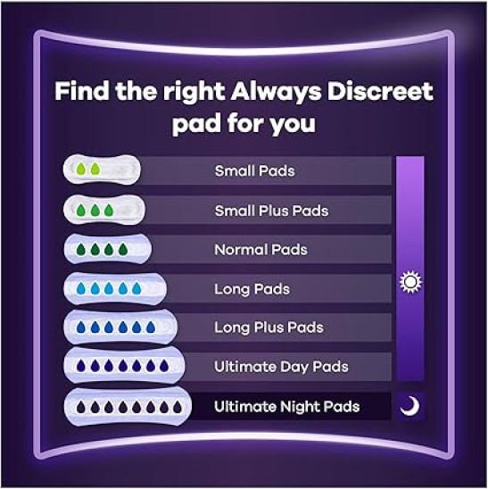 Always Discreet Incontinence Pads Women, Ultimate Night, Absorbency 8, 48 Sanitary Towels (12 x 4)