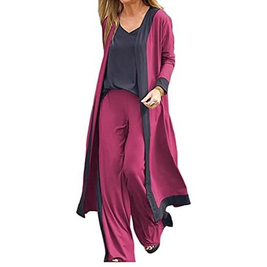 AMhomely Women 3 Pieces Outfits Set for Going Out Ladies Crop Vest Top Long Sleeve Open Front Cardigan Coat High Waist Long Trouser Pant Casual Suit Multicoloured, red