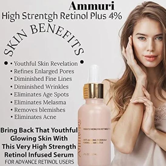 Ammuri High Strength Retinol Serum for Face, 4% Retinol Serum for Wrinkles, Dark Circles Acne, Anti Aging