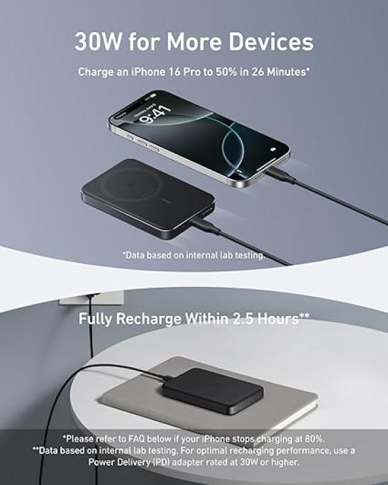Anker MagGo Power Bank, Ultra-Slim 10,000mAh Magnetic Portable Charger