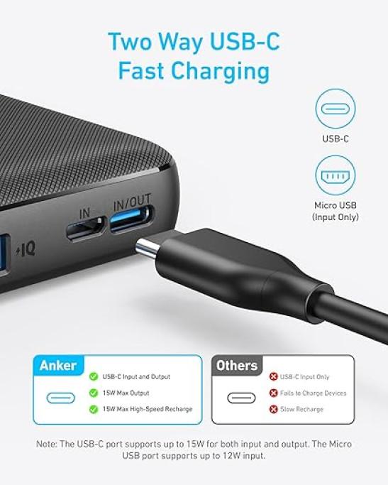 Anker Power Bank, Compact Portable Charger (PowerCore 10K) 10,000mAh Battery Pack