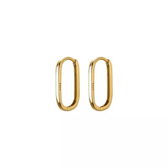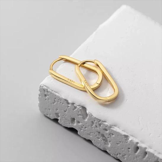 ANYCO 925 Sterling Silver Gold Huggie Earrings for Women – Small Oval Hoop Design – Boho Style, Hypoallergenic, Tarnish-Resistant Ear Buckle Jewellery