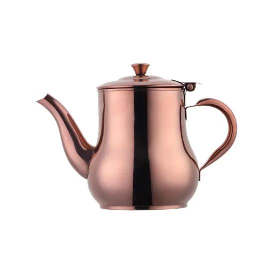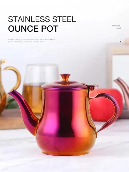 ANYGLEAM Rose Gold Stainless Steel Teapot – 18x14cm with Filter – Heat-Resistant Handle – Tea, Coffee, Oil & Liquid Seasoning Kettle