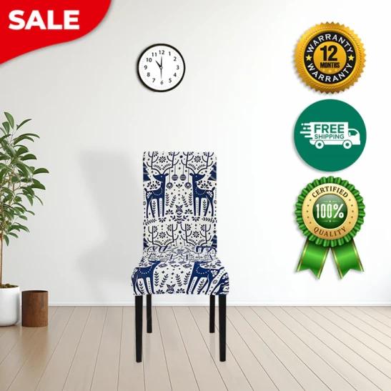 Anyseat Chair Cover White Blue Xmas Deer Pattern with Anti-Dirt and Elastic Material for Dining Room Kitchen Wedding Hotel Banquet Restaurant