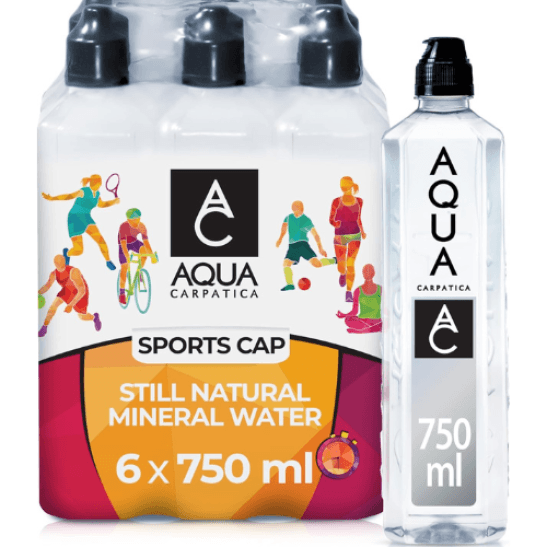 AQUA Carpatica Sports Cap 750ml x 6 - Pure Natural Still Mineral Water for Active Hydration