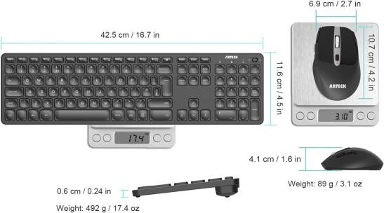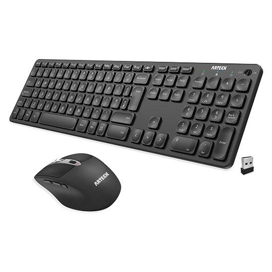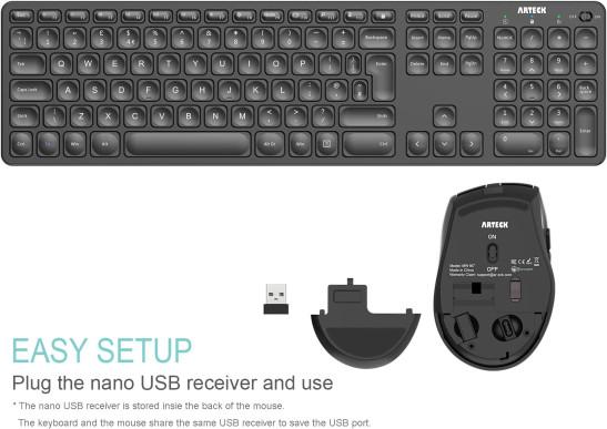 Arteck 2.4G Wireless Keyboard and Mouse Combo Ultra Slim Full Size Keyboard Keyboard and Ergonomic Mice for Computer Desktop PC Laptop and Windows 11/10/8/7 Build in USB-C Rechargeable Battery