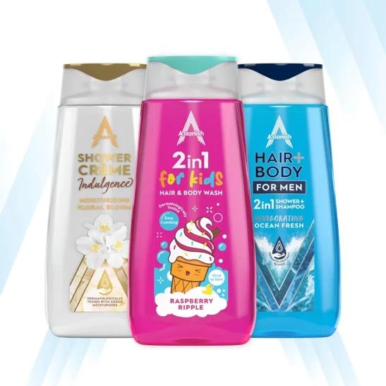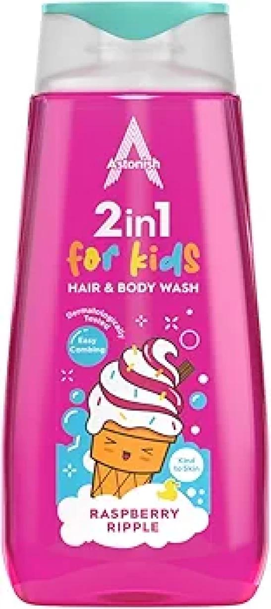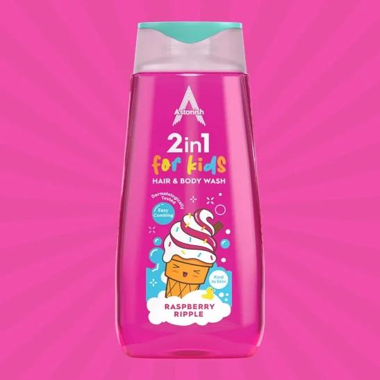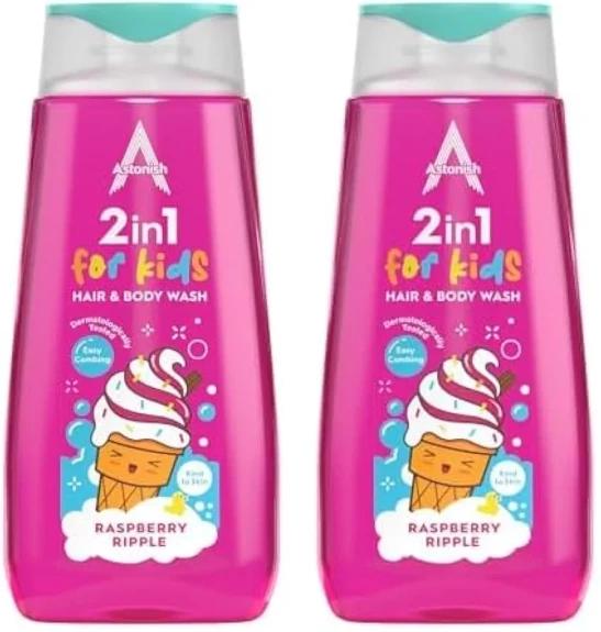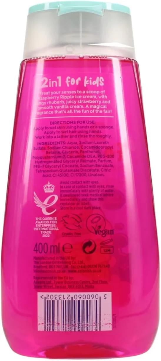 Astonish 2 in 1 Hair & Body Wash for Kids, Gentle Cleanse and Nourish, Raspberry Ripple, 400ml (Pack of 2)