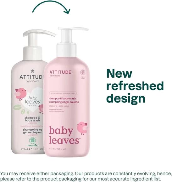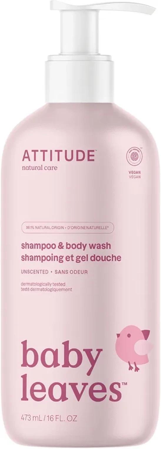 ATTITUDE 2-in-1 Hair Shampoo and Body Wash for Baby, Plant and Mineral-Based Gentle Formula, EWG Verified, Vegan Baby Products, Unscented, 473 mL