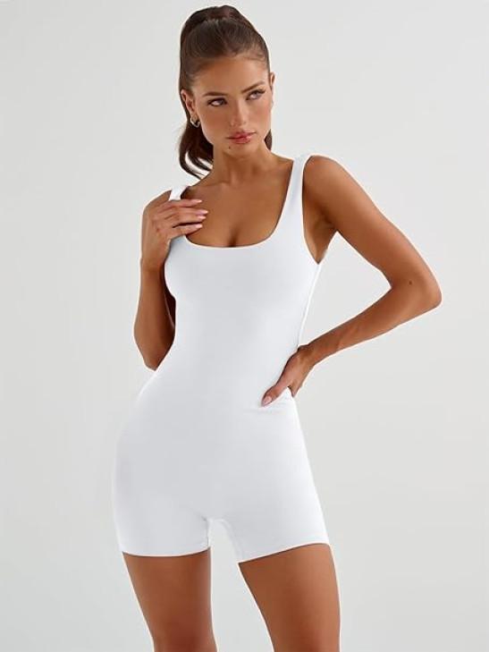 AUTOMET Womens Jumpsuits Unitard Bodysuits One Piece Shorts Rompers Yoga Sleeveless Backless Seamless Bodycon Outfits 2023