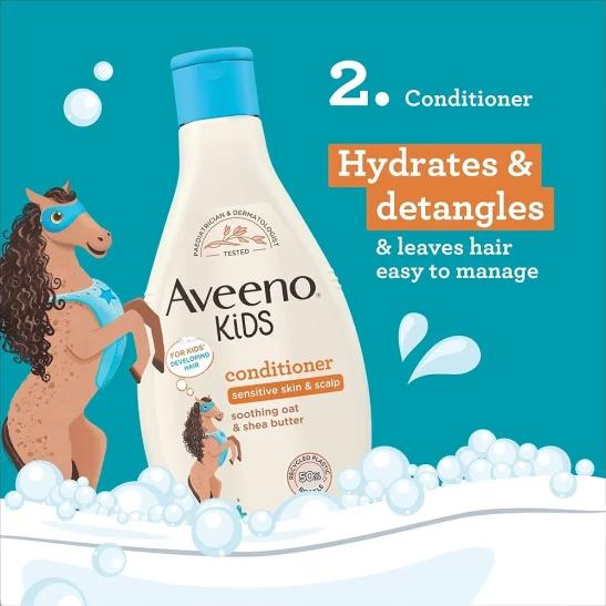 AVEENO® Kids Haircare Bundle, 250ml | Enriched with Soothing Oat & Shea Butter | Developed for Kids’ Developing Skin & Hair | Childrens Toiletries Sets