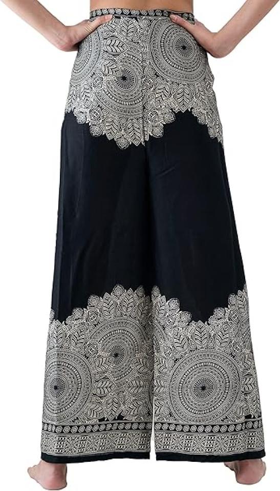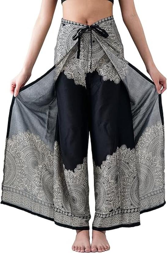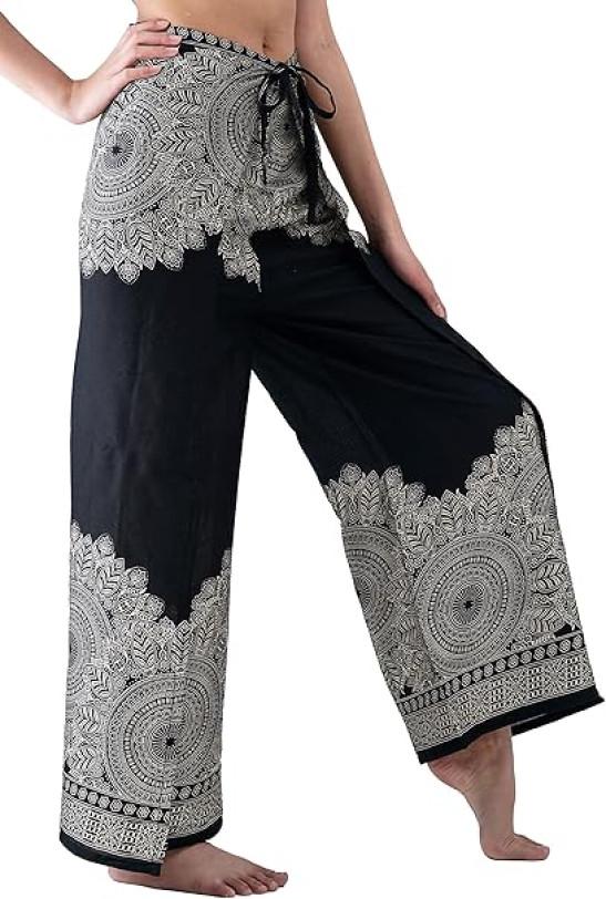 B BANGKOK PANTS Women's Boho Palazzo Pants Wide Leg Yoga Wrap Tie Up Waist
