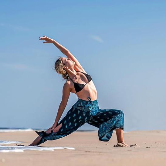 B BANGKOK PANTS Women's Boho Palazzo Pants Wide Leg Yoga Wrap Tie Up Waist