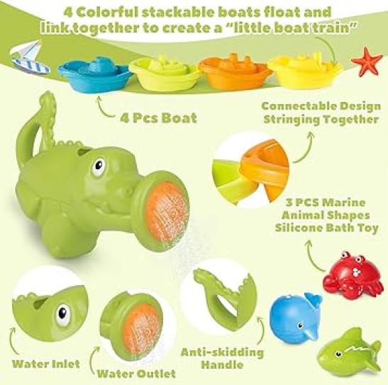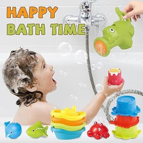 Baby Bath Toys for 1-3 Year Old Toddler, 16PCS Mould Free Water Play Swimming Pool Toy for Kid Age 1 2 3, No Hole Watering Can Stacking Cup Boat for Boy Girl, Shower Summer Gift for Infant 6-12 Months