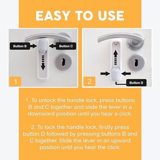 Baby Door Safety Locks -2 Pack, Easy to Install Stick on Door Lock, Door Lock Without Drilling 3M VHB Adhesive