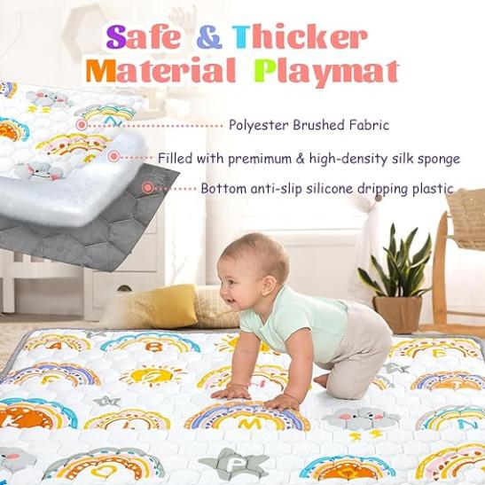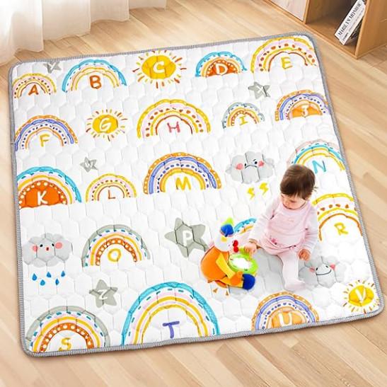 Baby Play Mat for Floor - 127x127cm Foldable Kids Playmat, Soft Non-Slip Crawling Matt for Toddlers 1 2 3 Years