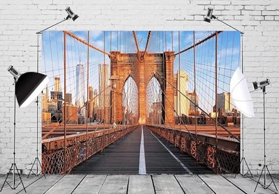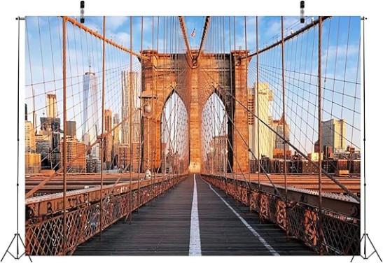 BELECO 2.1x1.5m Fabric Brooklyn Bridge Backdrop New York Iconic Building City Backdrop American Travel Landmark Photo