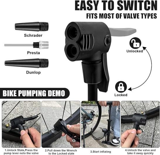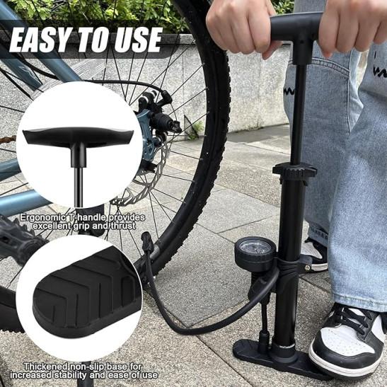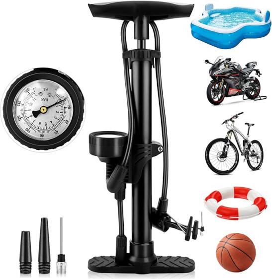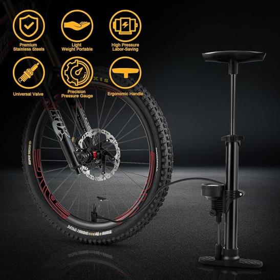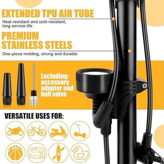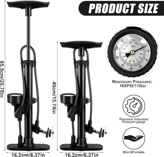 Bike Pump with Pressure Gauge, Bicycle Floor Pump Portable Bike Tyre Pump Stand Pump 160PSI/11Bar High Pressure Bike Air Pump