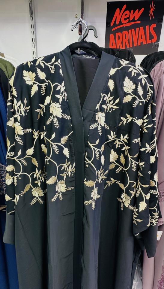 Midnight Onyx Embroidered 2-Piece Abaya Set Black (60) – Gold Vine Embroidery with Inner Slip