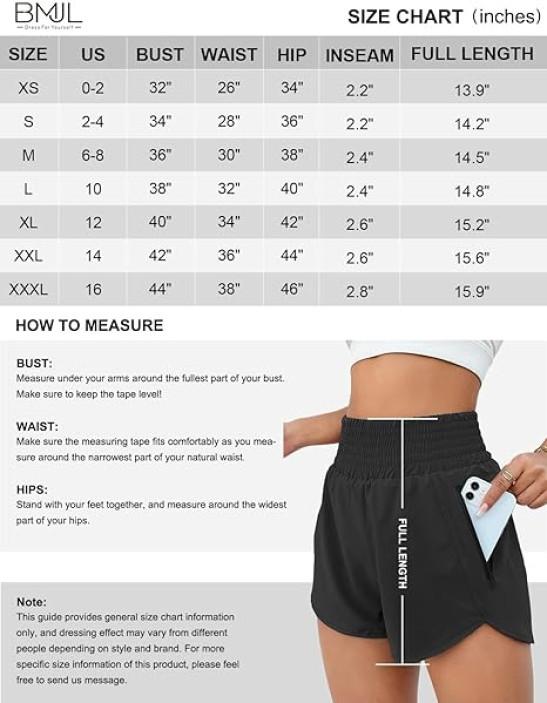 BMJL Women's Athletic Shorts High Waisted Running Shorts Pocket Sporty Short Gym Elastic Workout Shorts