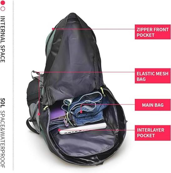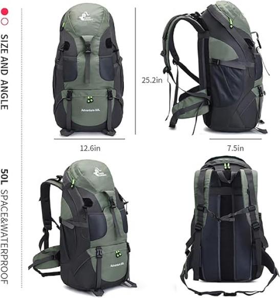 Bseash 50L Hiking Backpack, Water Resistant Lightweight Outdoor Sport Daypack Travel Bag for Camping Climbing Touring