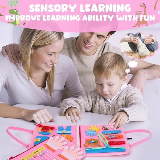 Busy Board for Toddlers, Montessori Sensory Toys Activity Board for Fine Motor Skills, Preschool Educational Learning for 1 2 3 4 5 Year Old Girls & Boys