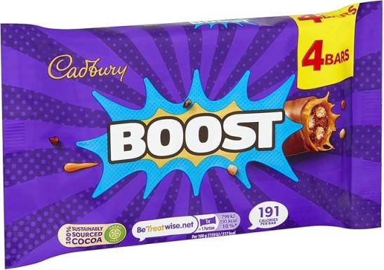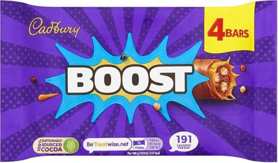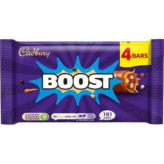 Cadbury Boost Original Chocolate Bars Filled With Biscuit & Cocoa With Chewy Caramel & Cadbury Milk Chocolate, Multipack of 4 x 37 g Bars