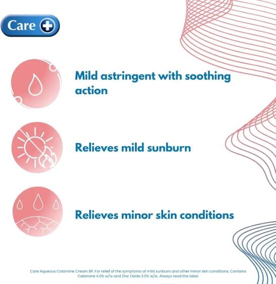 Care Aqueous Calamine Cream Sunburn Relief Soothing Itch Relief Cream Itchy skin relief for adults & Children TLC For Dry Skin And Other Minor Skin Conditions 100g 1 Pack