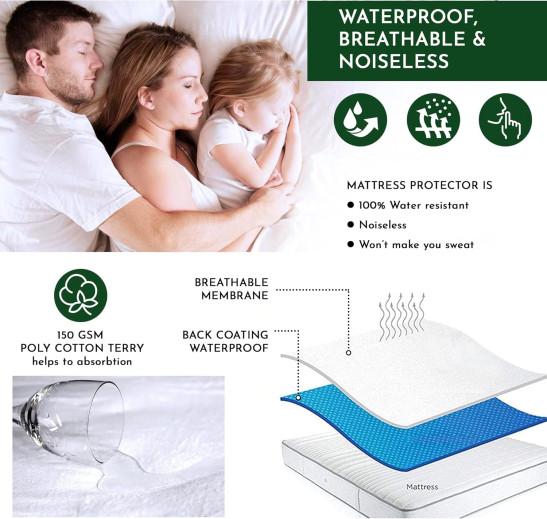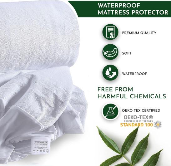 Caroline Shatuik 100% Waterproof Mattress Protector Double-30cm Extra Deep Stretch Skirt Non-Noisy Terry Top Fitted Mattress Protector Double Bed Cover(137x190cm)