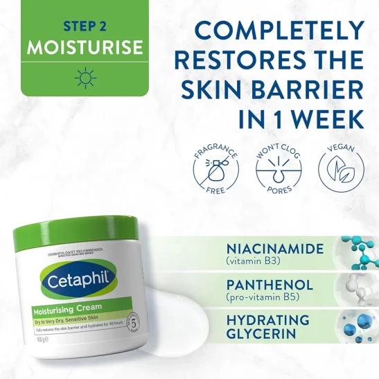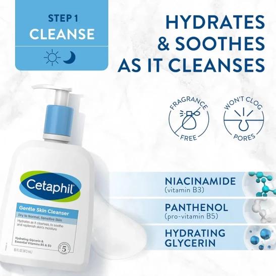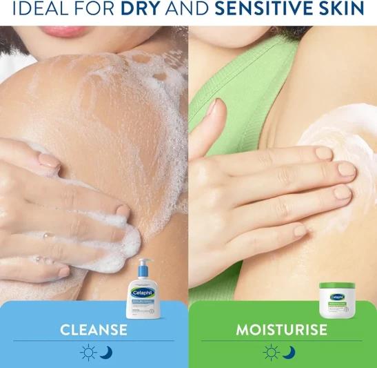Cetaphil Hydrating Gentle Skin Cleanser 236ml + Body Moisturising Cream 450g Skincare Set, For Dry & Sensitive Skin