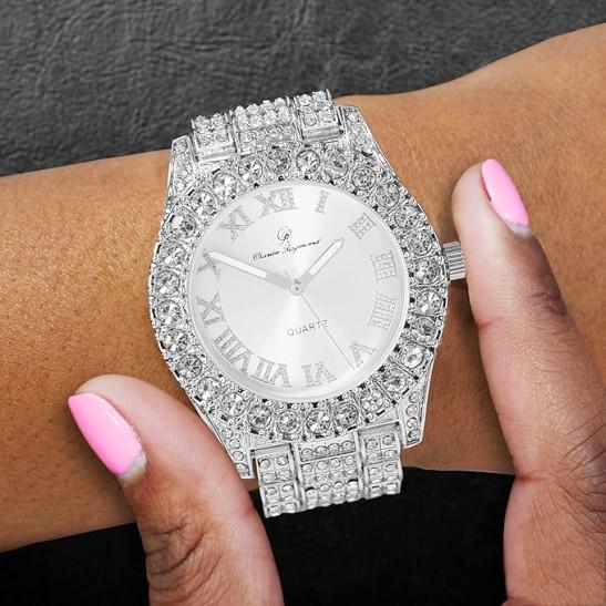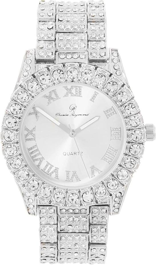 Charles Raymond Women's Big Rocks Bezel Colored Dial with Roman Numerals Fully Iced Out Watch - ST10327LA