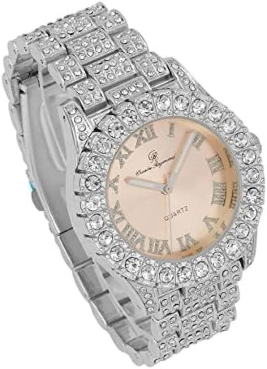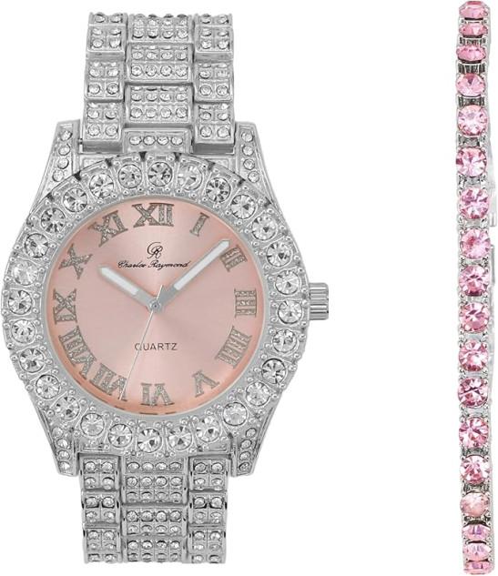Charles Raymond Women's Big Rocks Bezel Colored Dial with Roman Numerals Fully Iced Out Watch - ST10327LA