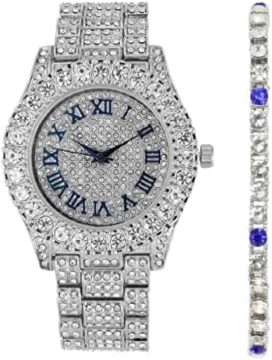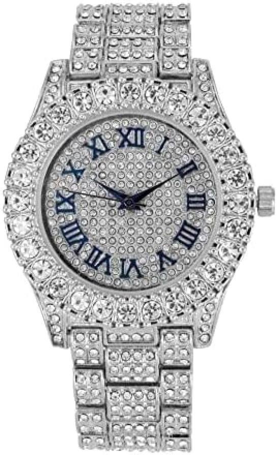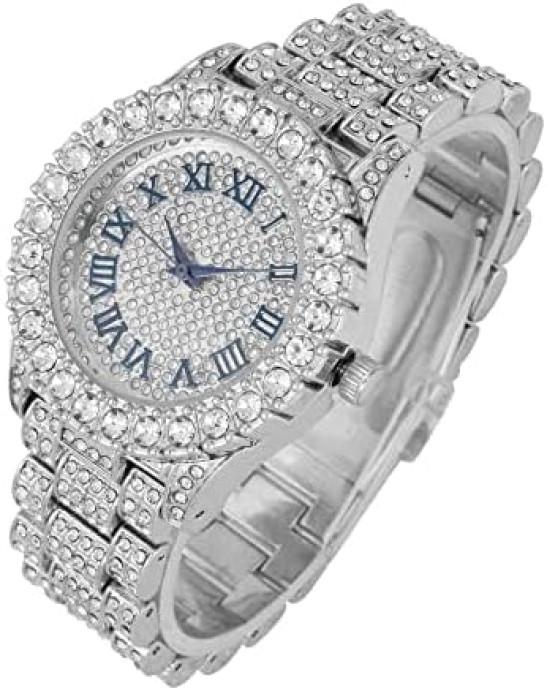 Charles Raymond Women's Big Rocks Bezel Colored Dial with Roman Numerals Fully Iced Out Watch - ST10327LA