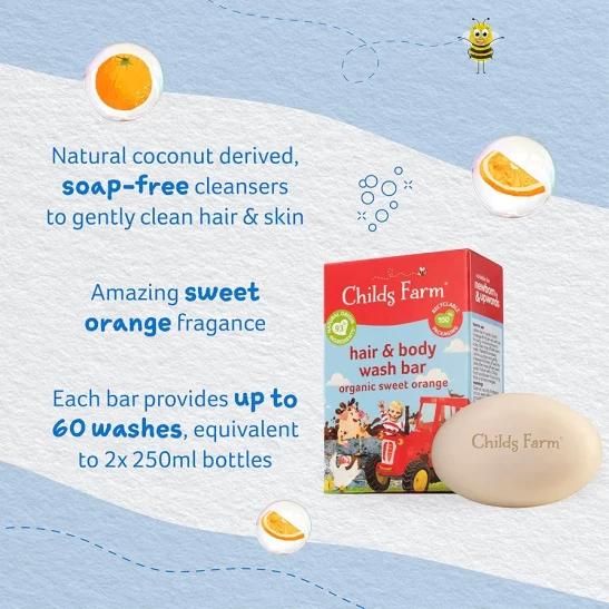 Childs Farm | Kids Hair and Body Wash Bar 60g | Organic Sweet Orange